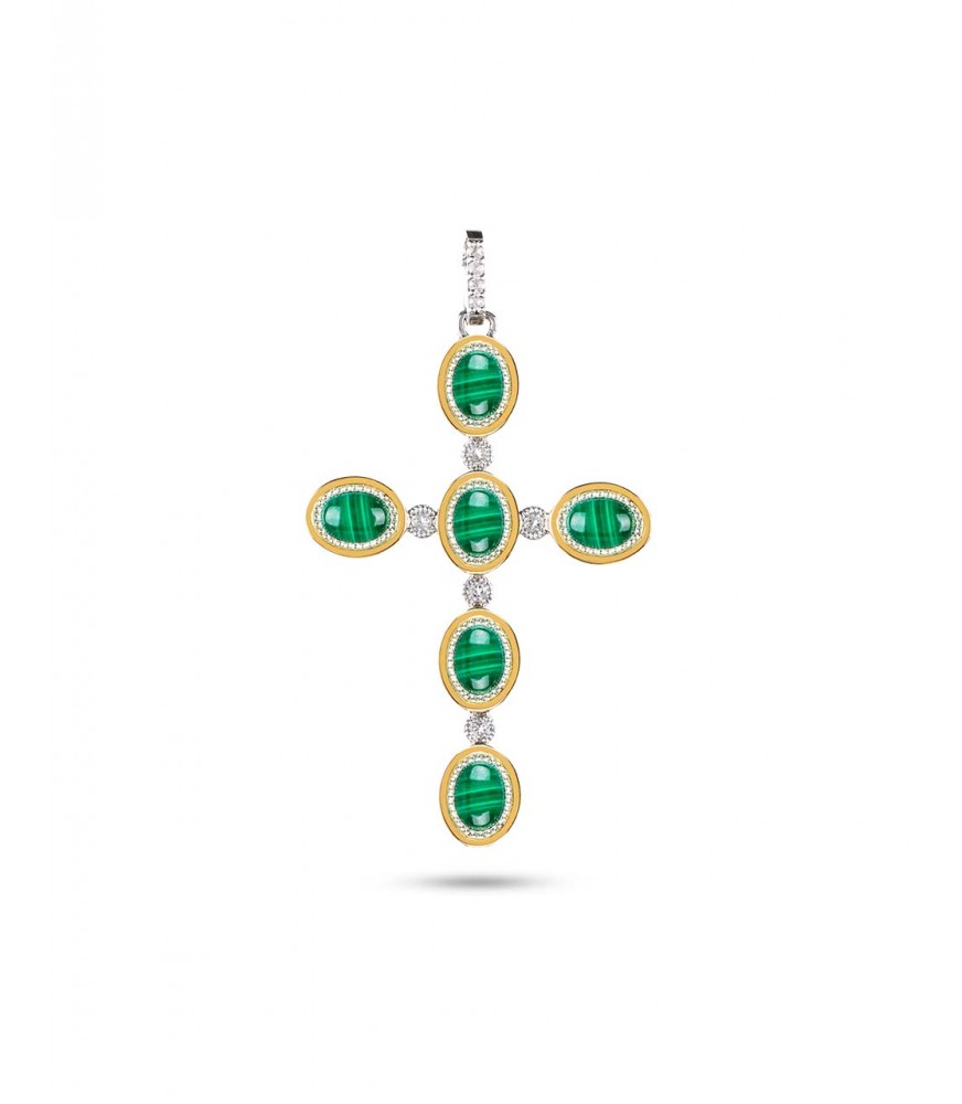 Medalha Upala Prata925% e Ouro375% c/ Malaquite e Zirconias