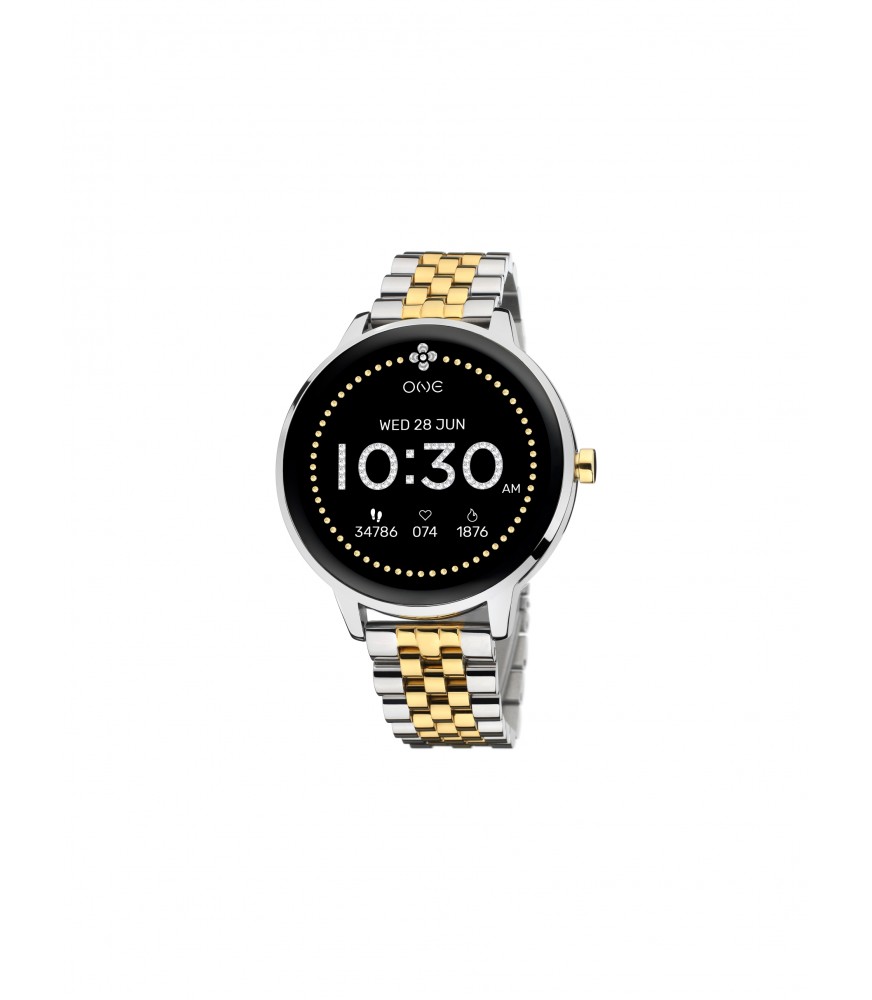 O smartwatch Queencall bicolor da geração 3 com bracelete de elos também bicolor segue a tendência mix and match entre dourado e prateado. Entre as várias características já existentes noturos modelo de smartwatches Ones, o modelo Queencall é pioneiro ao ter a capacidade de fazer e receber chamadas via Bluetooth.