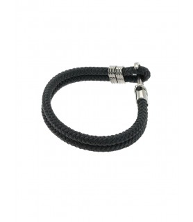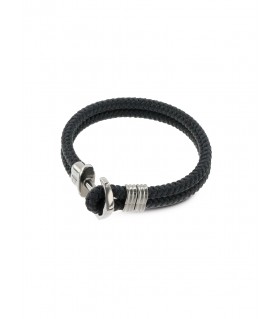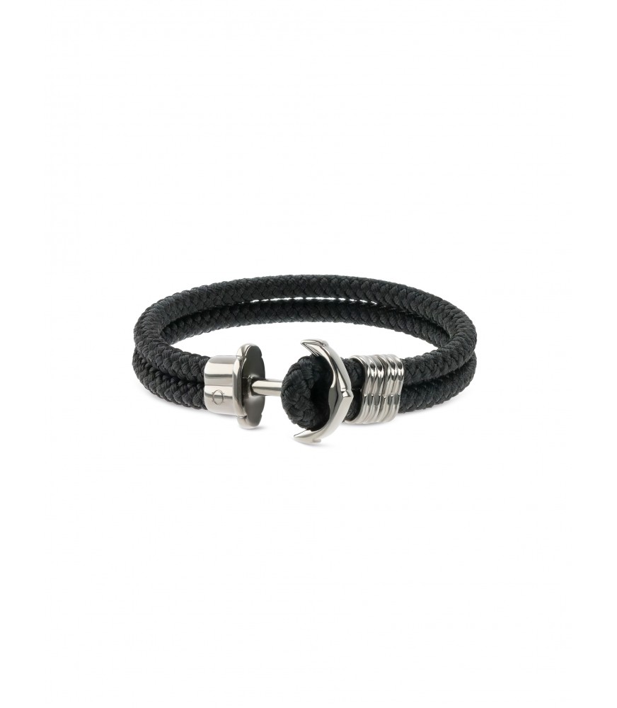 A pulseira Mountain preta da coleção One Men é inspirada e tem como principal destaque uma âncora. É composta por duas tiras de corda pretas de espessura média que terminam com uma âncora em aço inoxidável a servir de gancho para fechar a pulseira - a terminação de de uma das extremidades 'enlaça' na âncora fechando assim a pulseira, dando realce ao fecho da pulseira ao invés de outras da coleção. Um acessório com um estilo mais descontraído e aventureiro, ideal para combinar com looks mais casuais ou desportivos.