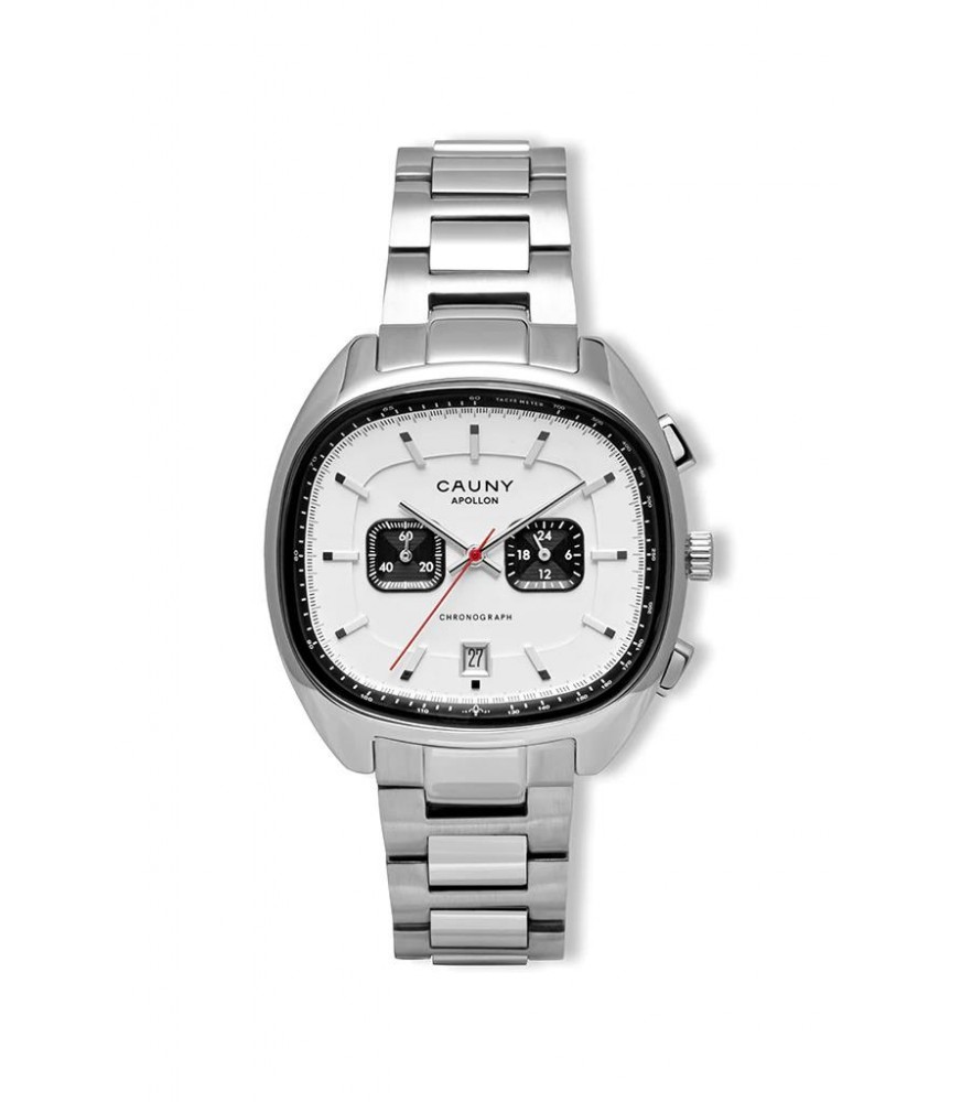 Baseada na caixa Apollon de sempre, a versão cronógrafo traz novas funcionalidades, detalhes e beleza ao mais popular clássico da Cauny.