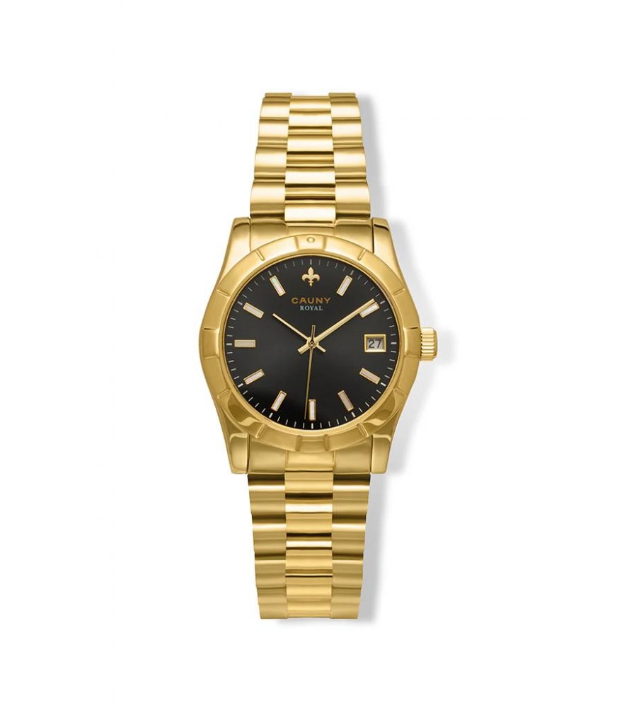 Com a Flor-de-Lis da Cauny embutida no mostrador, índices com o interior em madrepérola, pulseira em aço e proporções moderadas, o Cauny Royal é o acessório perfeito da mulher moderna. Com uma bracelete e caixa plaqueadas a ouro e um mostrador negro, esta é provavelmente a versão mais audaz da colecção. A escolha da mulher que nada teme.
