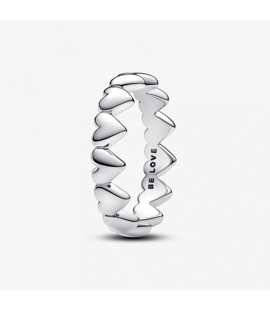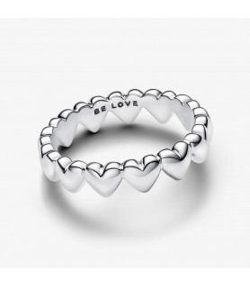 Fabricado com minúcia, com uma fila de corações a formar o aro, este design romântico fica igualmente bonito usado sozinho ou conjugado com outros anéis.