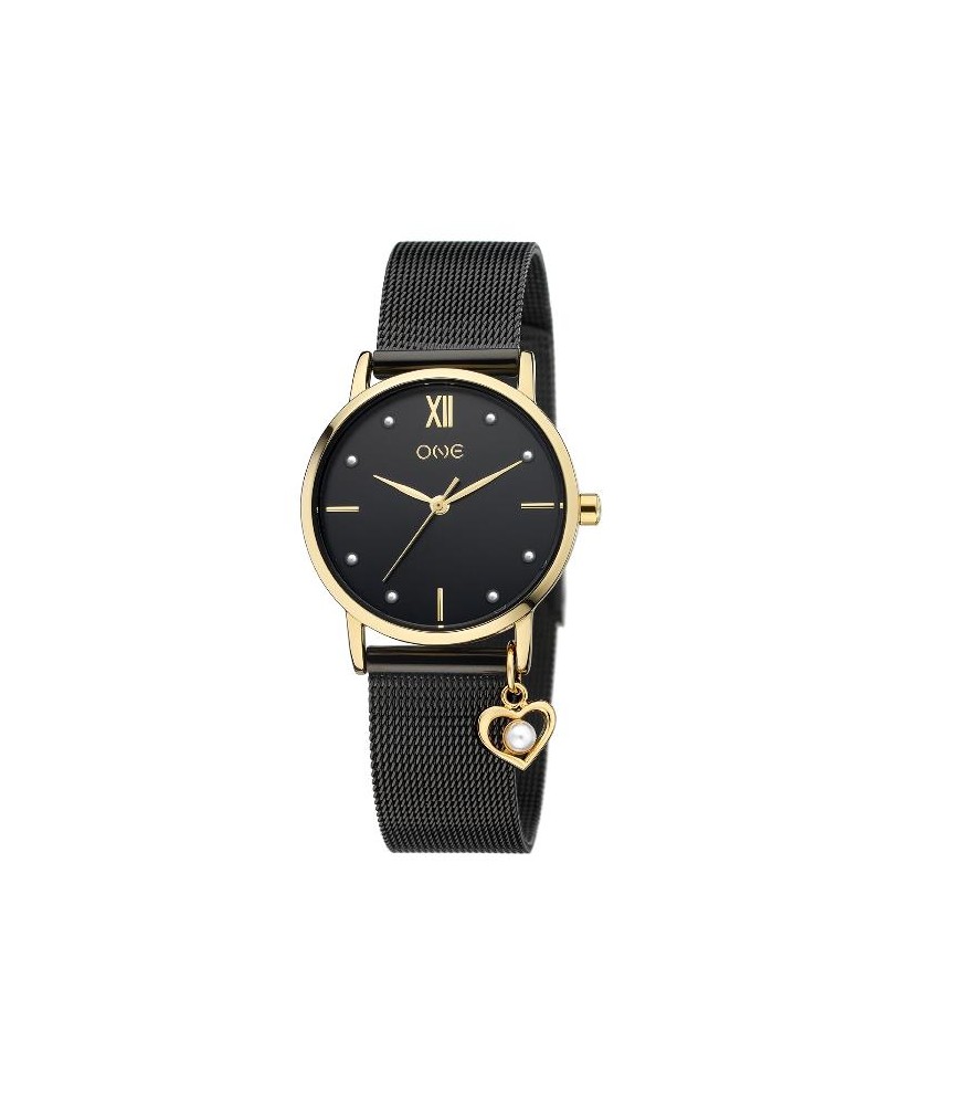 O relógio analógico Truly Black é uma peça delicada e romântica que segue a tendência de caixas redondas mais pequenas no pulso. O relógio tem um mostrador em fundo preto, complementado por oito pequenas pérolas nos indexes 1, 2, 4, 5, 7, 8, 10 e 11, onde se realçam os três ponteiros (horas, minutos e segundos) e indexes 12, 3, 6 e 9 ambos em dourado. Na bracelete, também preta e em mesh dando continuidade ao mostrador, está pousado um pequeno pendente com o formato de um coração, em dourado com uma pequena pérola no centro.