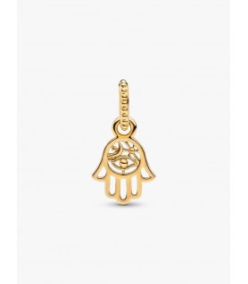 Abrace a proteção e a positividade com este amuleto intrincado que apresenta uma Mão de Fátima ou Hamsa decorada com os motivos simbólicos de um olho e da lua, uma referência significativa à força e à luz.
