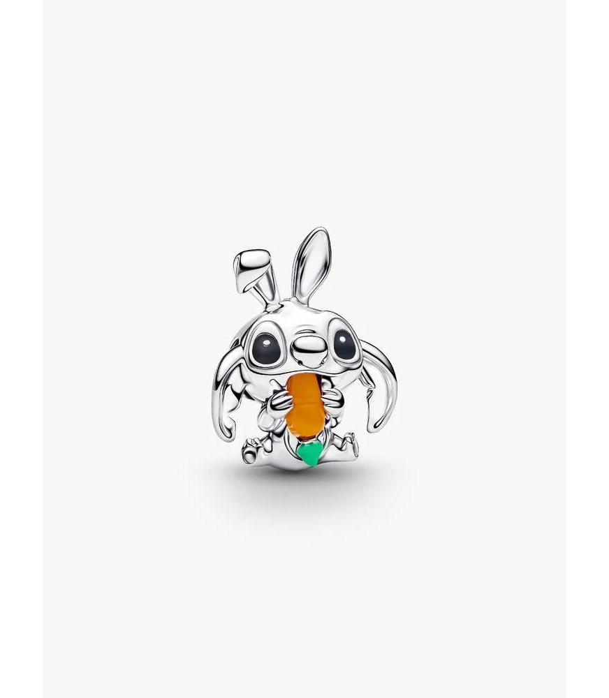 O Stitch salta para a estação com orelhas de coelho e uma cenoura, tudo com a sua travessura característica.