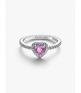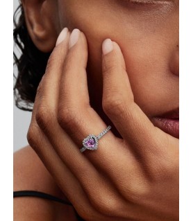 Anel Pandora Prata 925% c/ Zircónias Coração Rosa 198421C12
