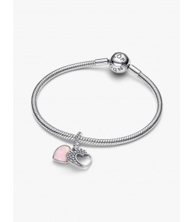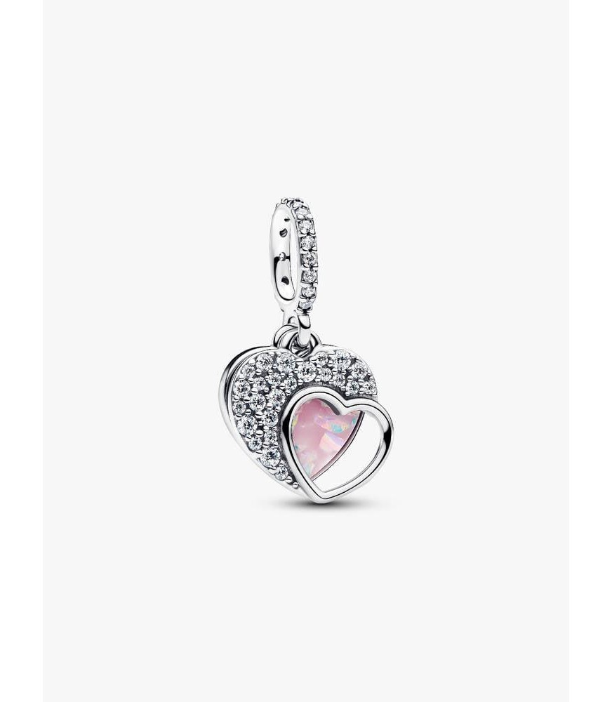 Esta conta apresenta dois pendentes em forma de coração.