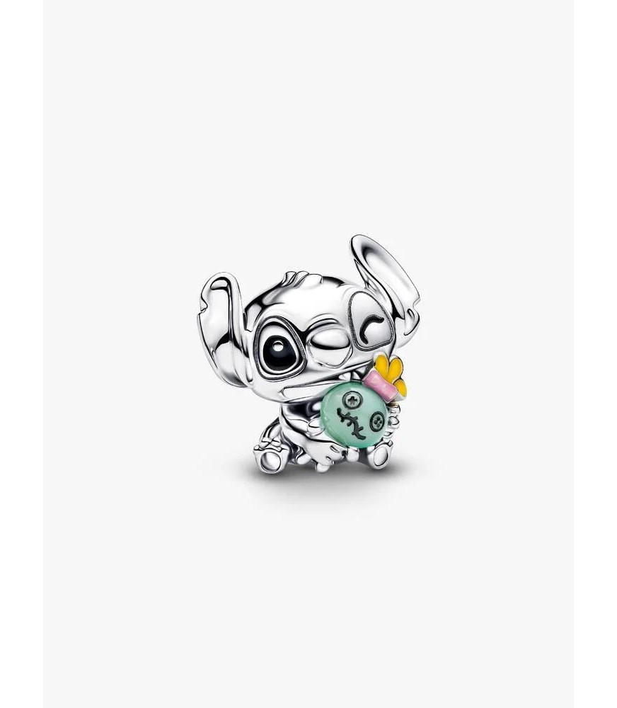 O Stitch é visto a aconchegar a Scrump, a boneca preferida da sua amiga Lilo. A Scrump ganha vida em vidro Murano verde com apontamentos de esmalte colorido.