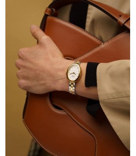 Nesta versão bicolor, o mostrador branco e a caixa e bracelete em dois tons criam um look elegante para o dia a dia, tão prático quanto requintado.