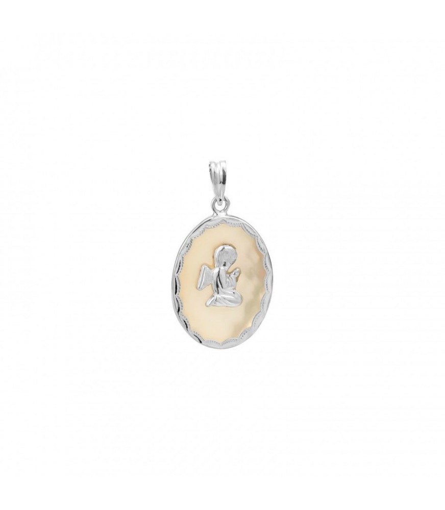 Medalha Prata 925% c/ Madre Pérola Anjo da Guarda 34-84221